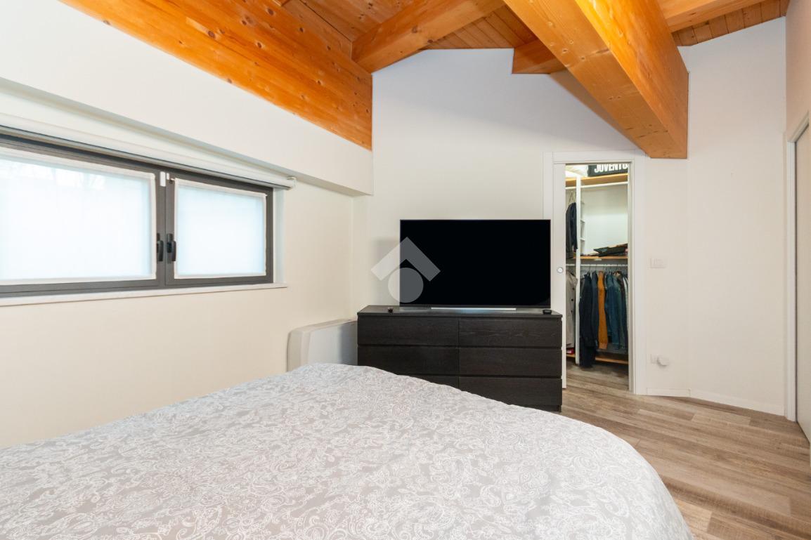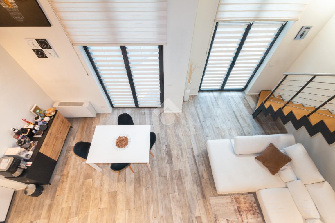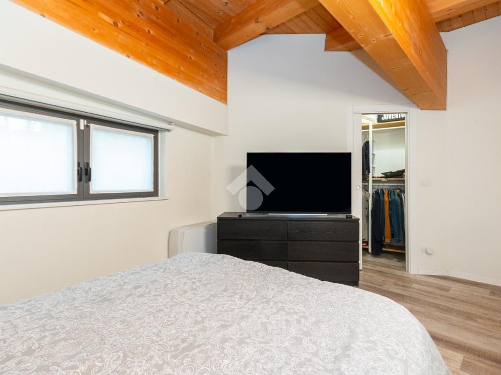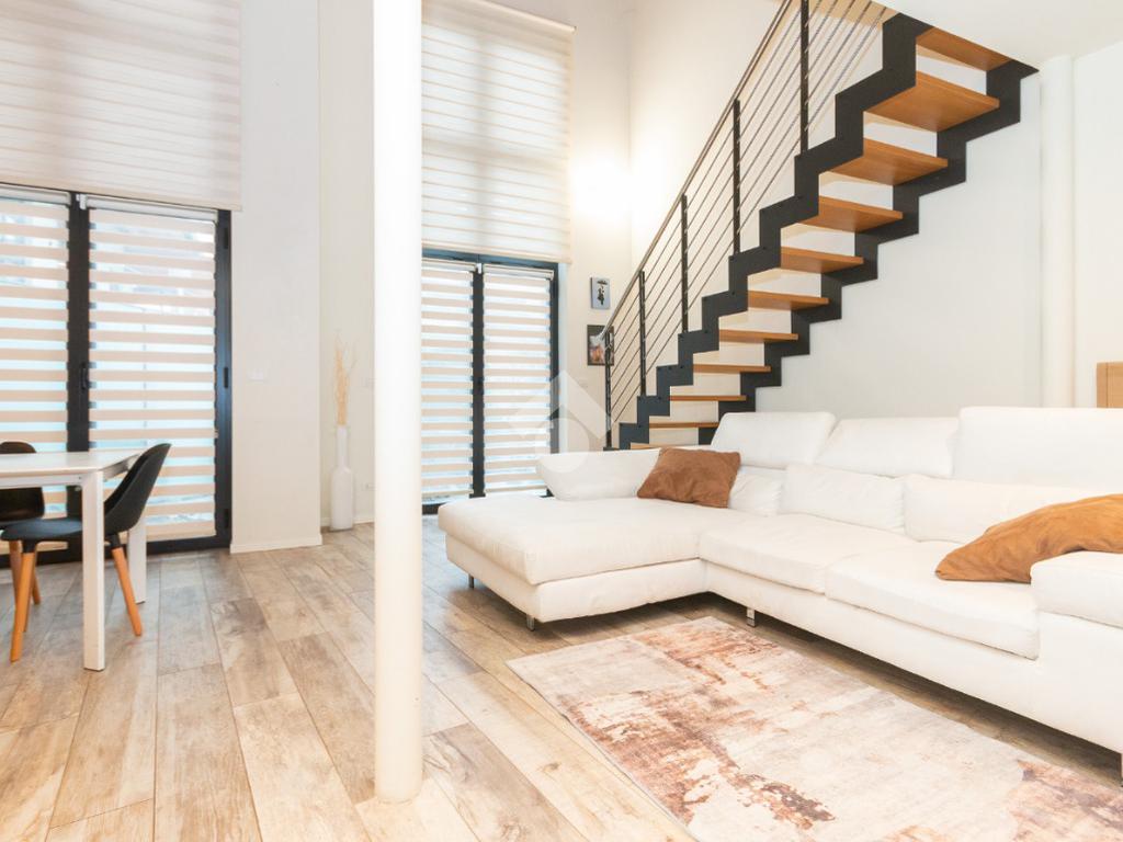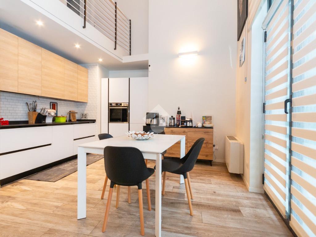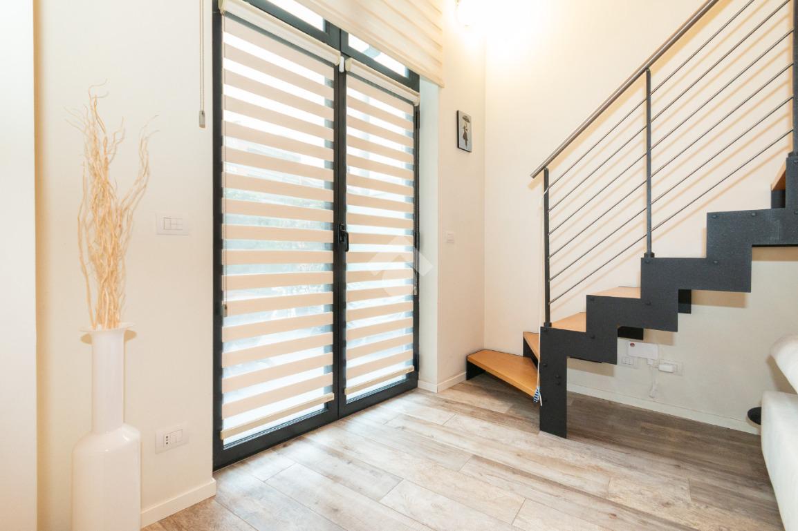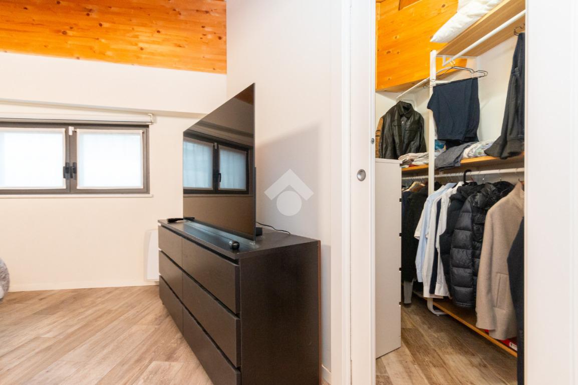 L'accesso alla zona notte avviene tramite un'elegante e poco invadente scala interna che conduce ad un ambiente aperto nel quale è possibile ricavare due camere singole grazie alla presenza di due finestre. Inoltre è presente la camera matrimoniale impreziosita dalla funzionale e pratica cabina armadio. Al piano troviamo il secondo bagno completo di tutti i sanitari. Gli infissi sono in PVC doppio vetro, la porta d'ingresso è blindata e la pavimentazione e rivestimenti sono in gres porcellanato effetto legno. Completa la soluzione il riscaldamento autonomo tramite fancoil caldo/freddo.