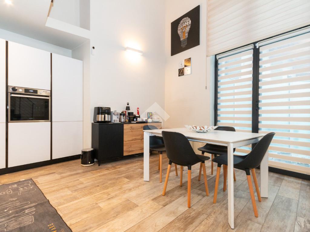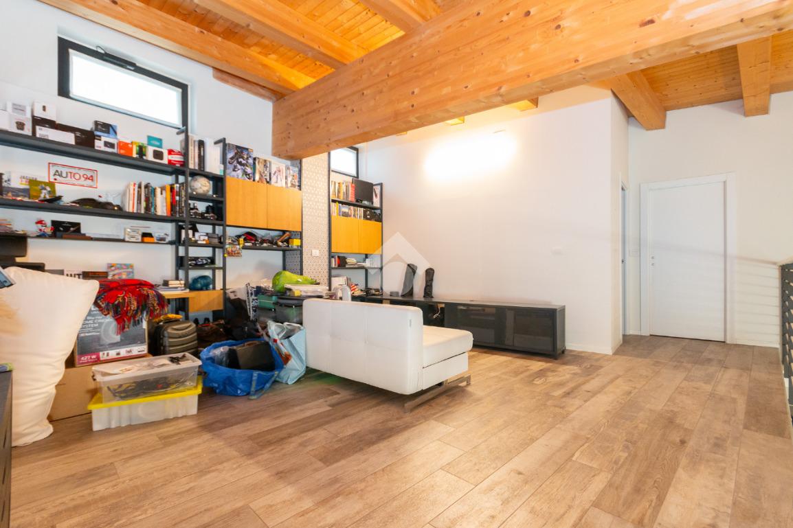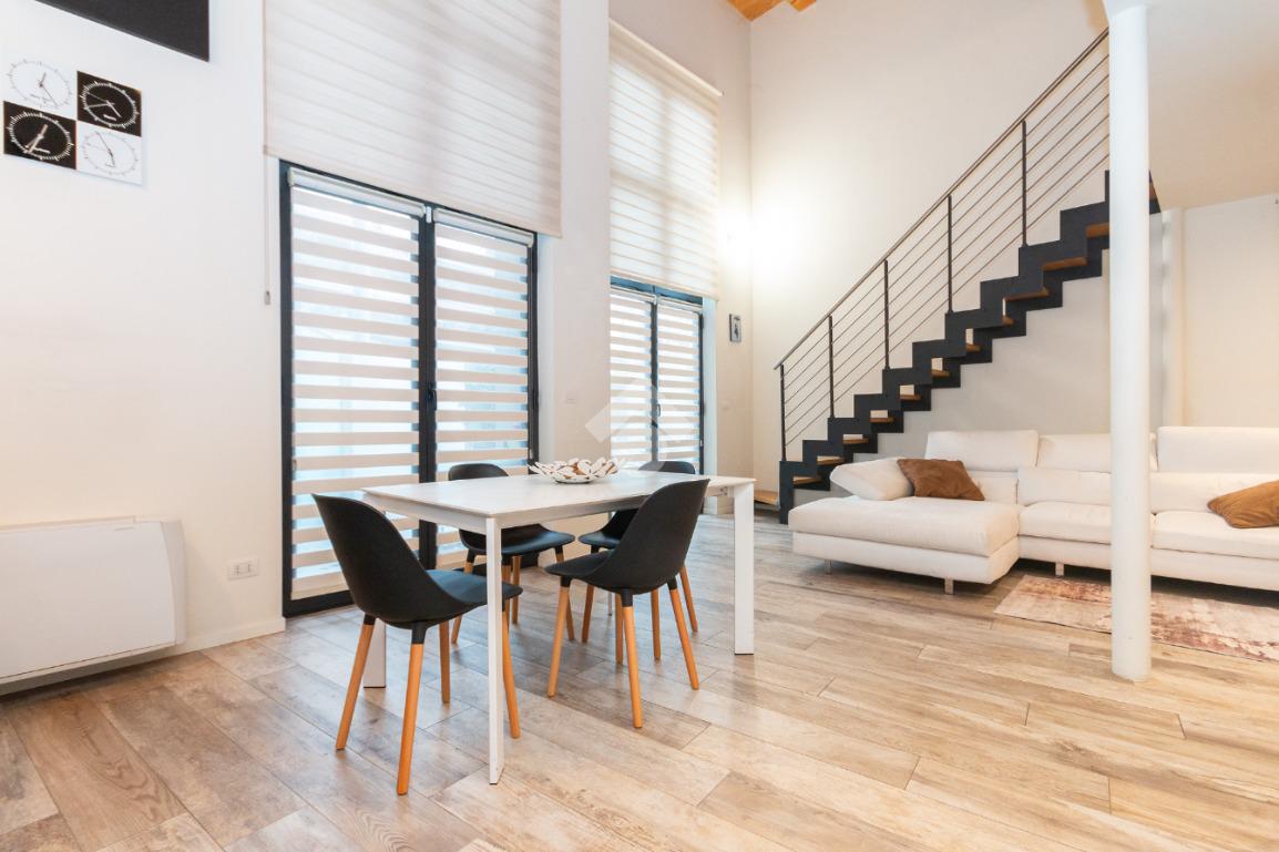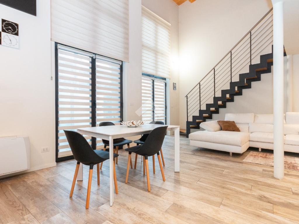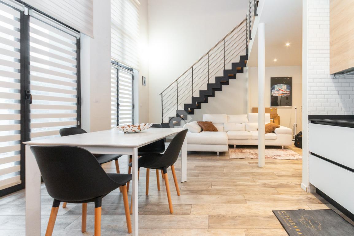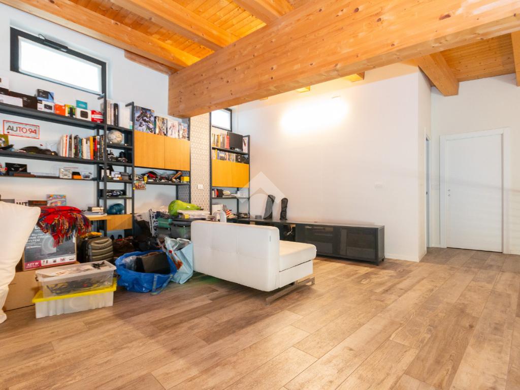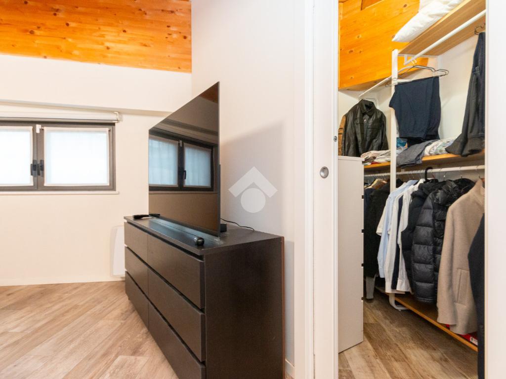 L'accesso alla zona notte avviene tramite un'elegante e poco invadente scala interna che conduce ad un ambiente aperto nel quale è possibile ricavare due camere singole grazie alla presenza di due finestre. Inoltre è presente la camera matrimoniale impreziosita dalla funzionale e pratica cabina armadio. Al piano troviamo il secondo bagno completo di tutti i sanitari. Gli infissi sono in PVC doppio vetro, la porta d'ingresso è blindata e la pavimentazione e rivestimenti sono in gres porcellanato effetto legno. Completa la soluzione il riscaldamento autonomo tramite fancoil caldo/freddo.