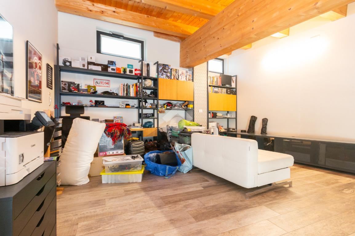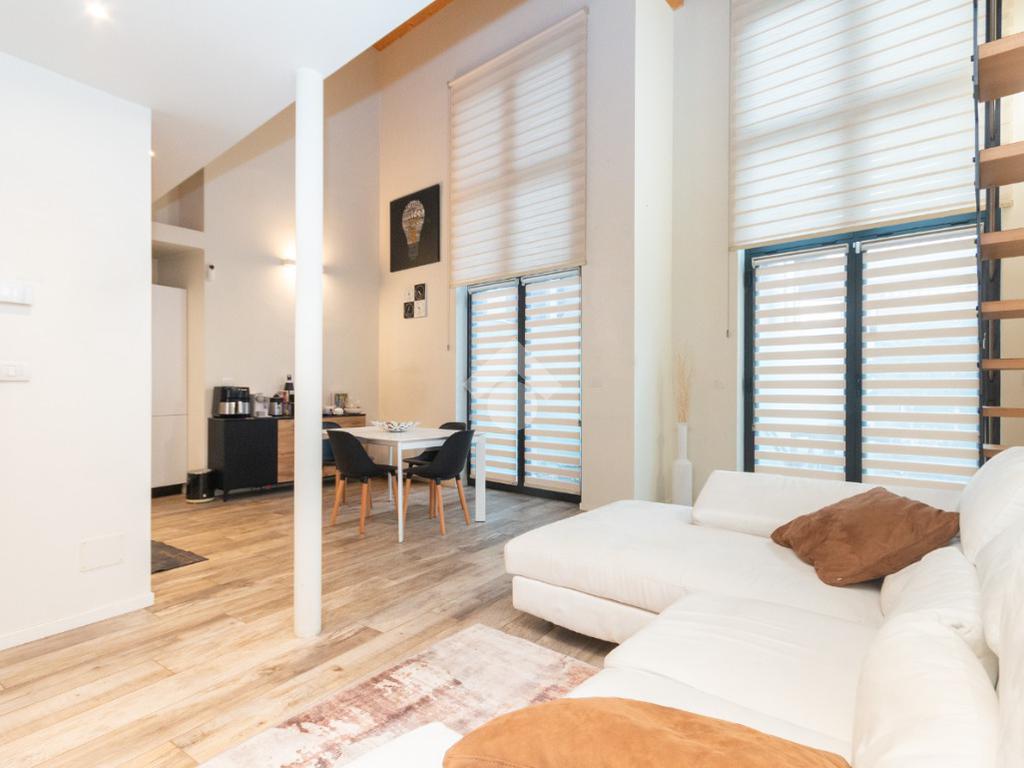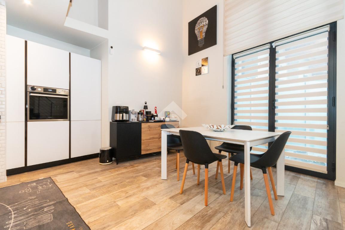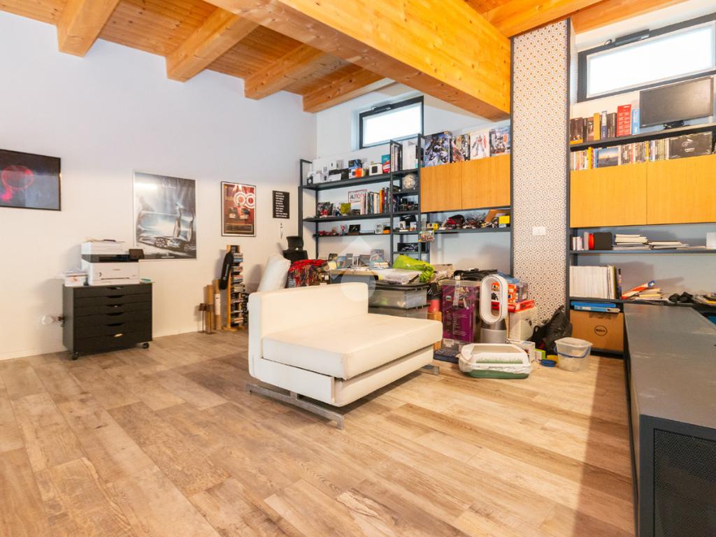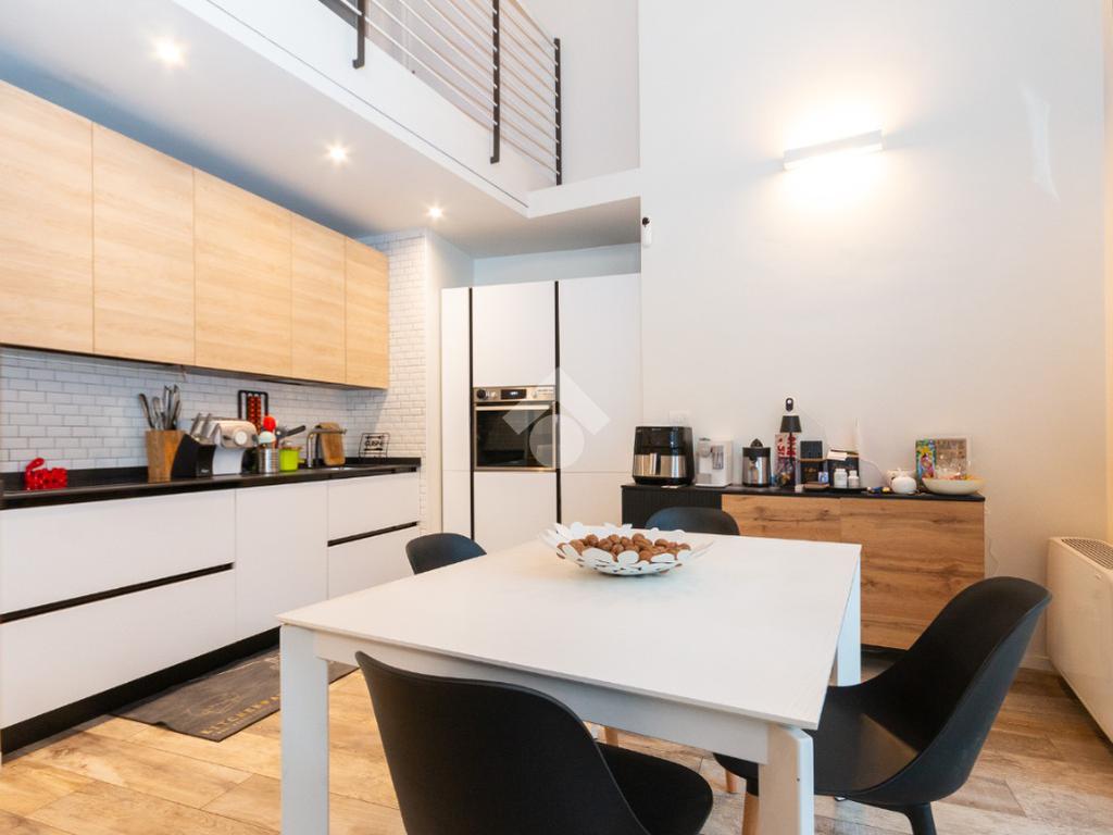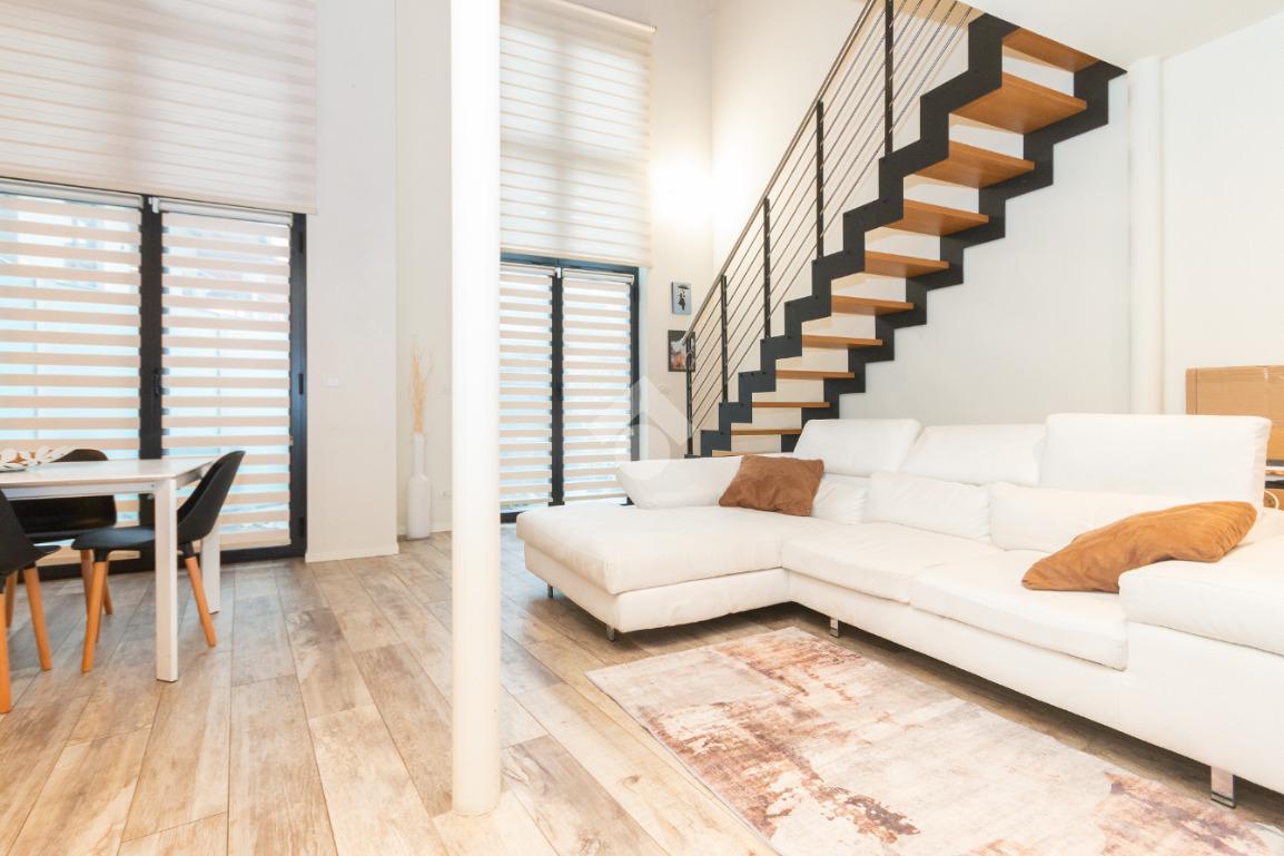L'accesso alla zona notte avviene tramite un'elegante e poco invadente scala interna che conduce ad un ambiente aperto nel quale è possibile ricavare due camere singole grazie alla presenza di due finestre. Inoltre è presente la camera matrimoniale impreziosita dalla funzionale e pratica cabina armadio. Al piano troviamo il secondo bagno completo di tutti i sanitari. Gli infissi sono in PVC doppio vetro, la porta d'ingresso è blindata e la pavimentazione e rivestimenti sono in gres porcellanato effetto legno. Completa la soluzione il riscaldamento autonomo tramite fancoil caldo/freddo.