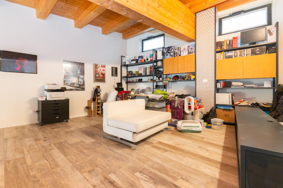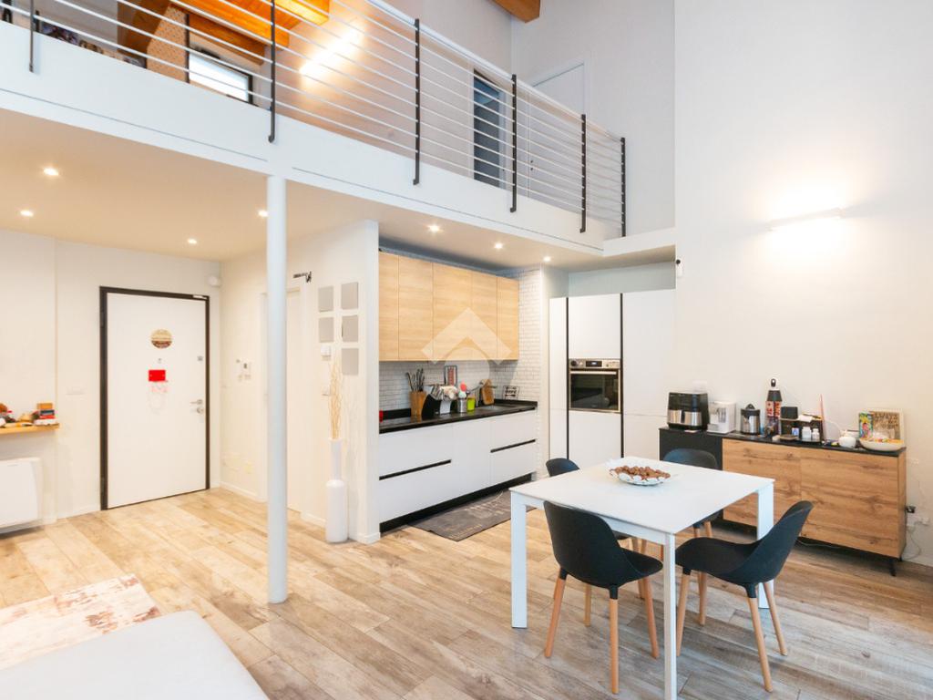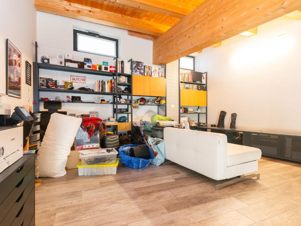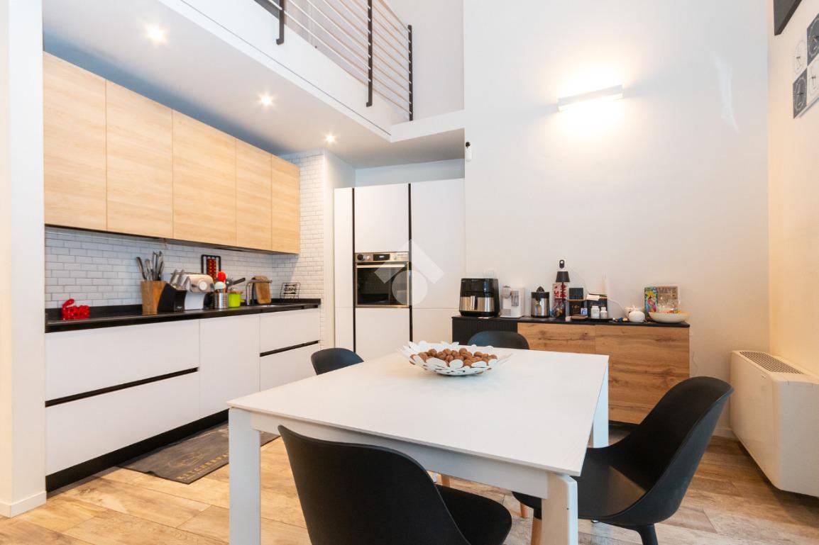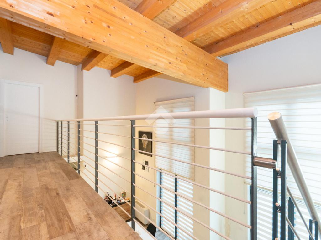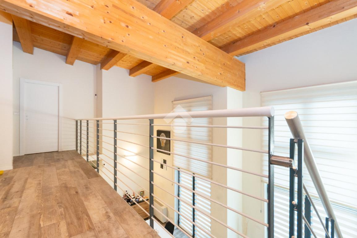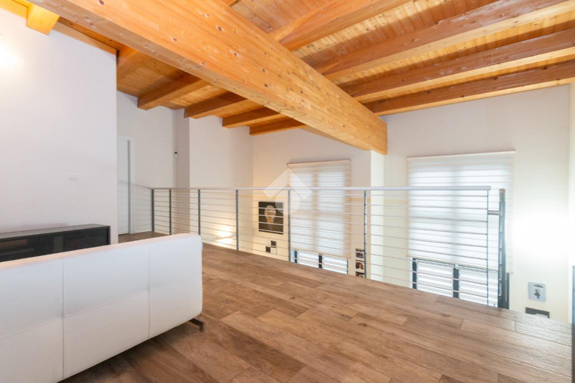 L'accesso alla zona notte avviene tramite un'elegante e poco invadente scala interna che conduce ad un ambiente aperto nel quale è possibile ricavare due camere singole grazie alla presenza di due finestre. Inoltre è presente la camera matrimoniale impreziosita dalla funzionale e pratica cabina armadio. Al piano troviamo il secondo bagno completo di tutti i sanitari. Gli infissi sono in PVC doppio vetro, la porta d'ingresso è blindata e la pavimentazione e rivestimenti sono in gres porcellanato effetto legno. Completa la soluzione il riscaldamento autonomo tramite fancoil caldo/freddo.