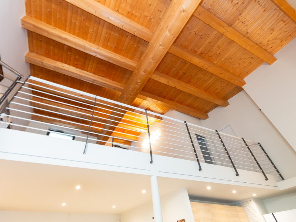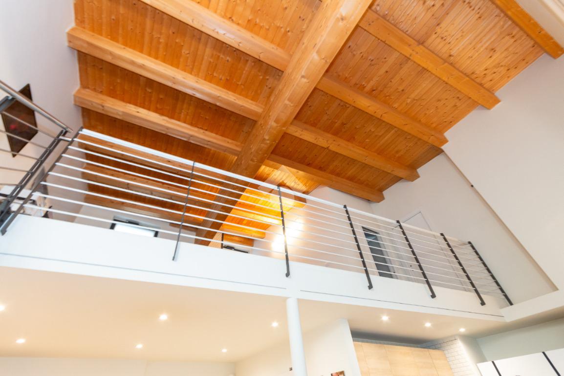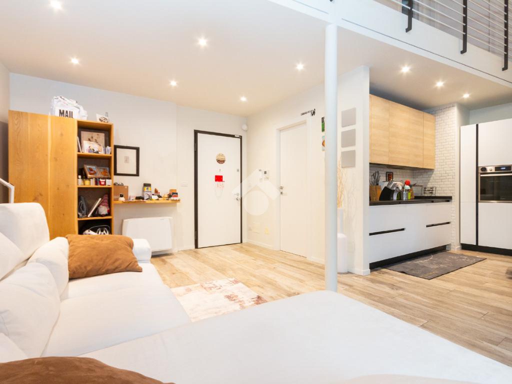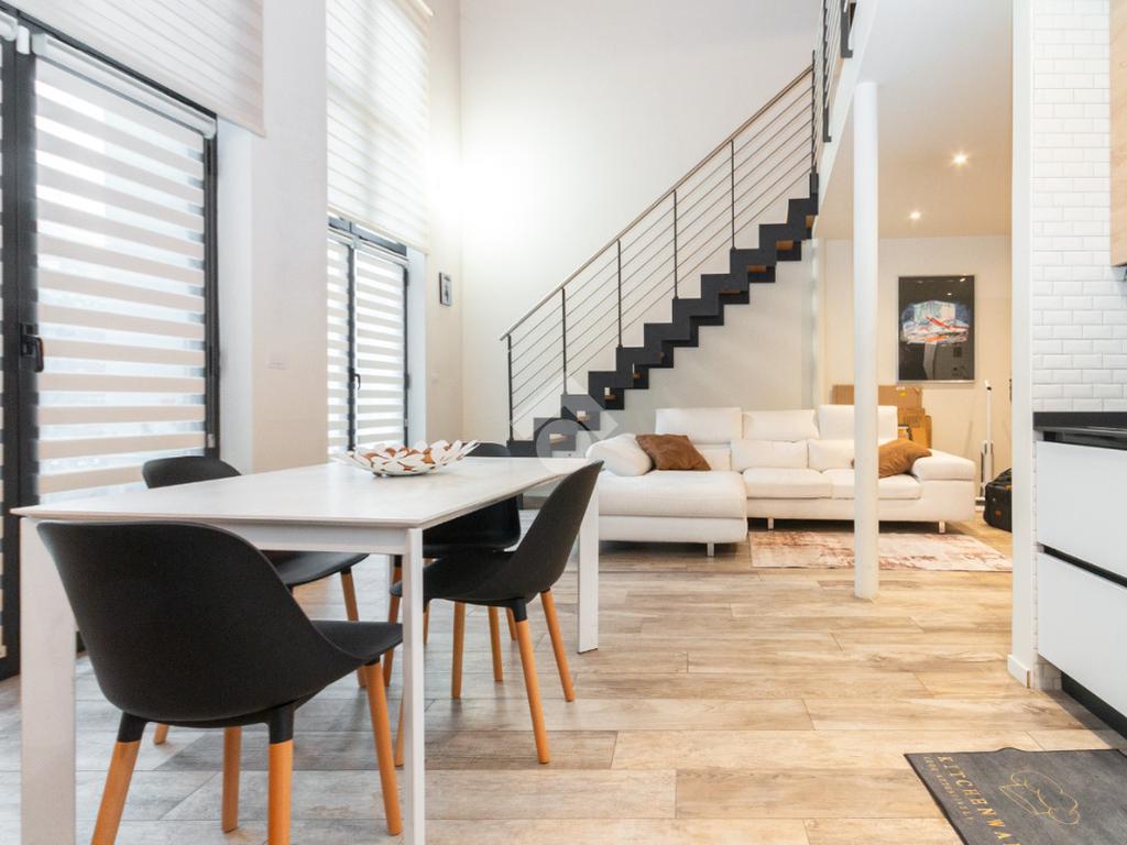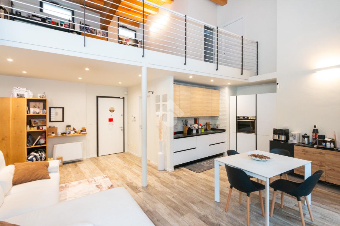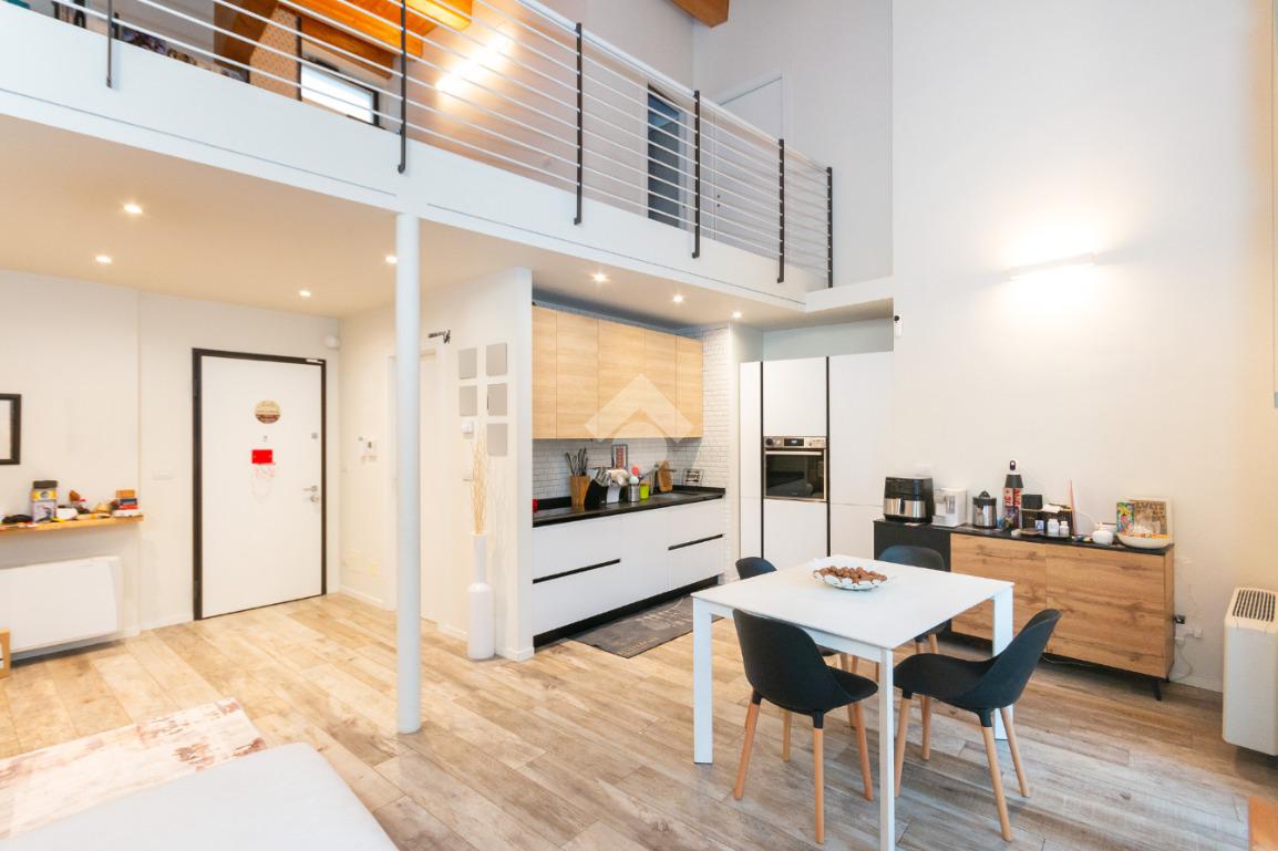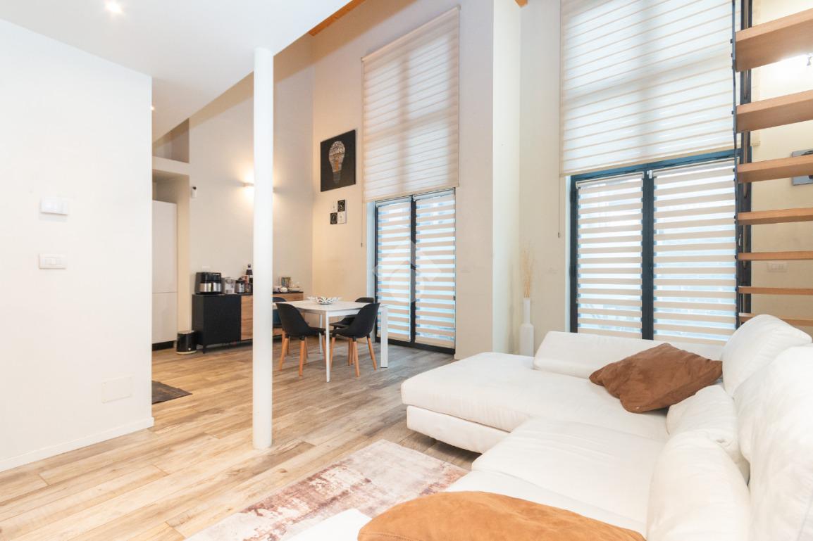 L'accesso alla zona notte avviene tramite un'elegante e poco invadente scala interna che conduce ad un ambiente aperto nel quale è possibile ricavare due camere singole grazie alla presenza di due finestre. Inoltre è presente la camera matrimoniale impreziosita dalla funzionale e pratica cabina armadio. Al piano troviamo il secondo bagno completo di tutti i sanitari. Gli infissi sono in PVC doppio vetro, la porta d'ingresso è blindata e la pavimentazione e rivestimenti sono in gres porcellanato effetto legno. Completa la soluzione il riscaldamento autonomo tramite fancoil caldo/freddo.